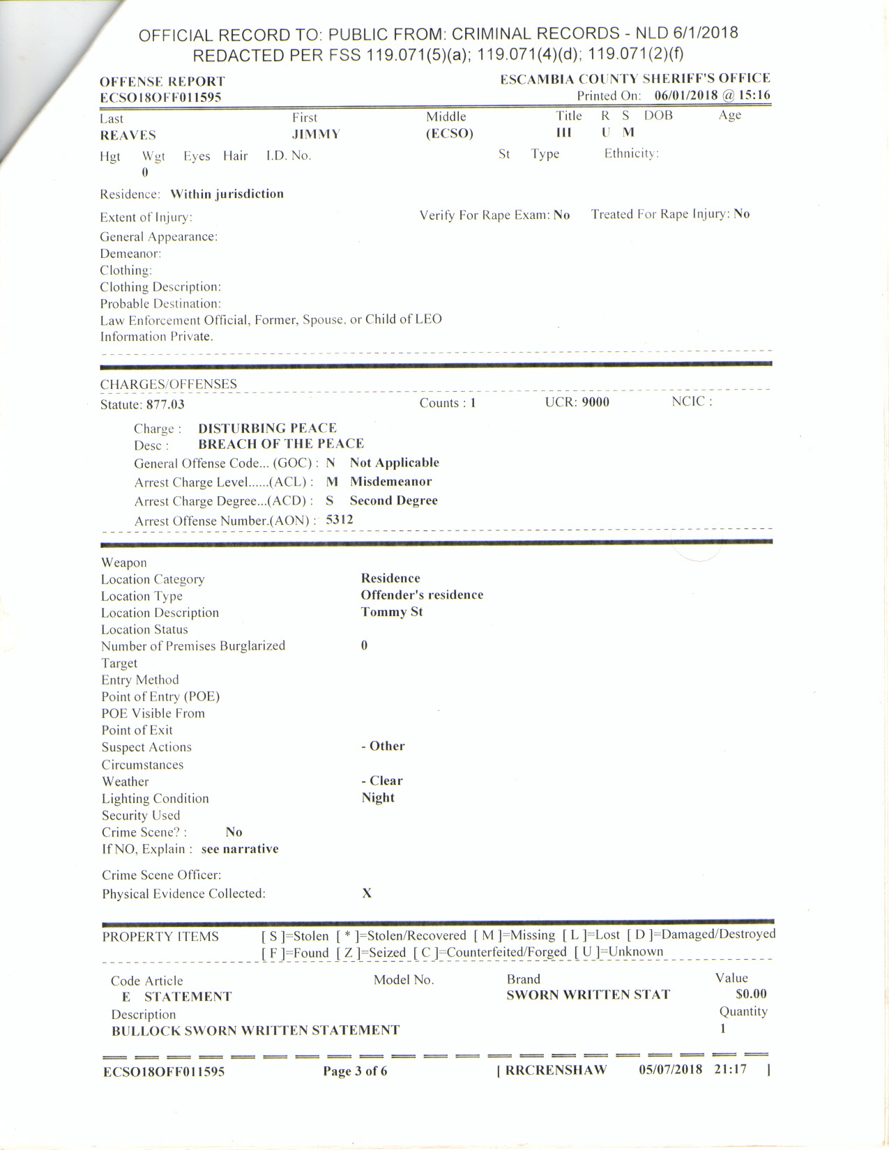 The two are not even partially the same. The report is pure fiction. Why is that? Because the resident involved called to report the stolen stereo. He spoke with Sgt. Jason Young, who told him that the deputies would NOT ARREST him for disorderly conduct and in exchange they would return his stereo. Arrest him? No crime was committed other than the stolen stereo. But this is the manipulation to act as if Young is doing the resident a favor, for in turn not making any waves about the stereo. This unfortunately is a common thing. Assuming people don’t know their rights and believe if a deputy does it, it must be legal is a fallacy that most in this ECSO administration count on.