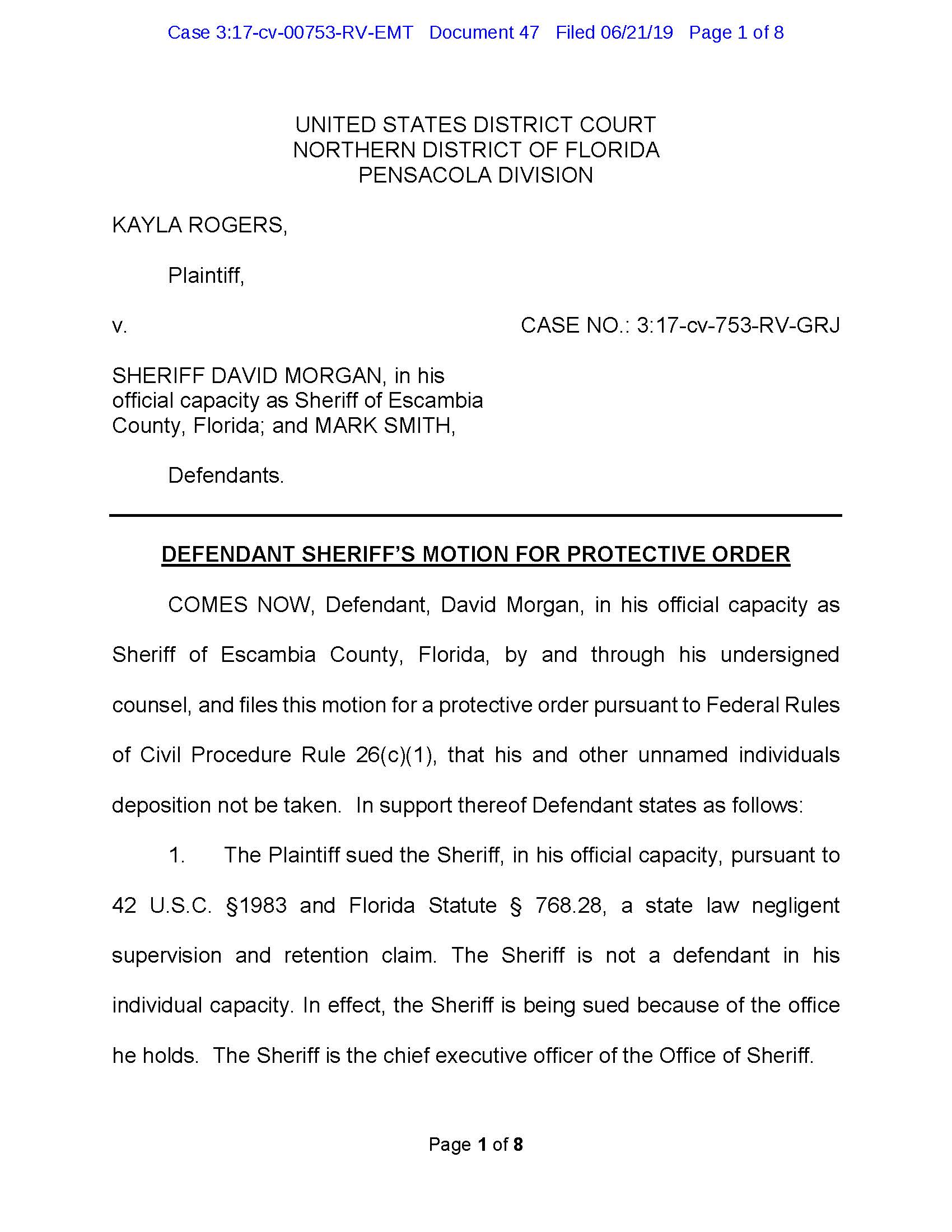 Here is the protective order he filed that I hope will get denied by Judge Vinson.