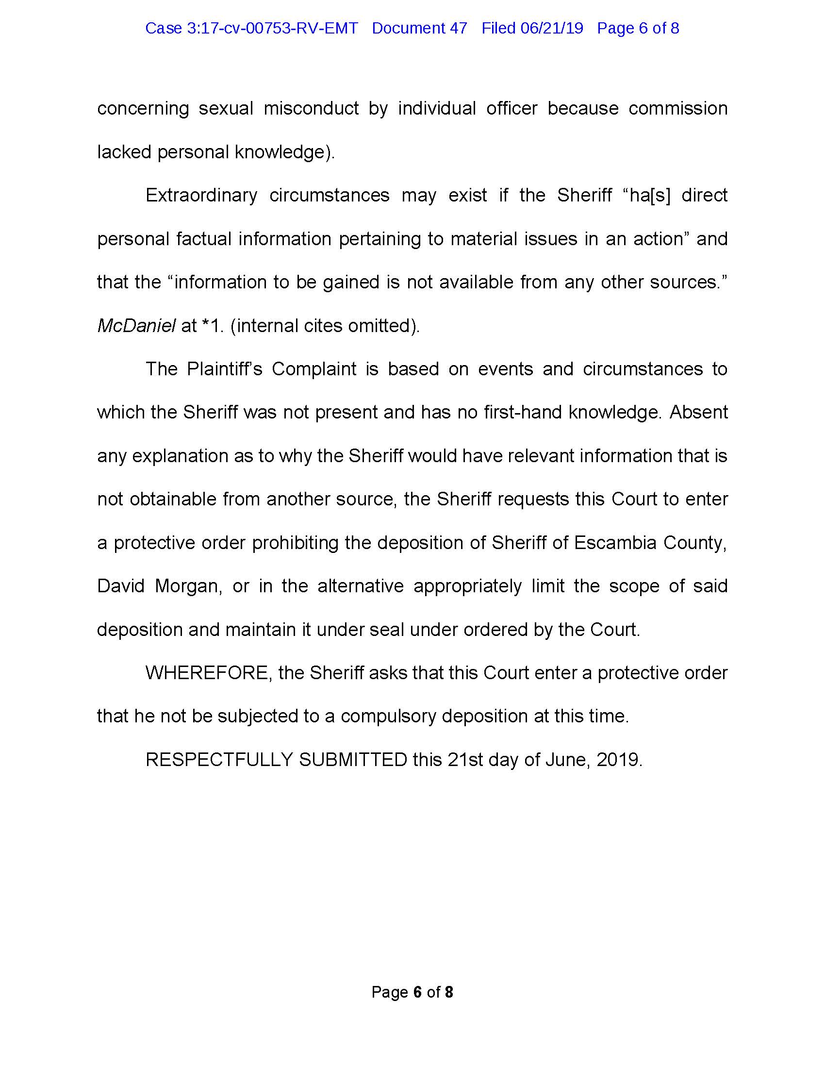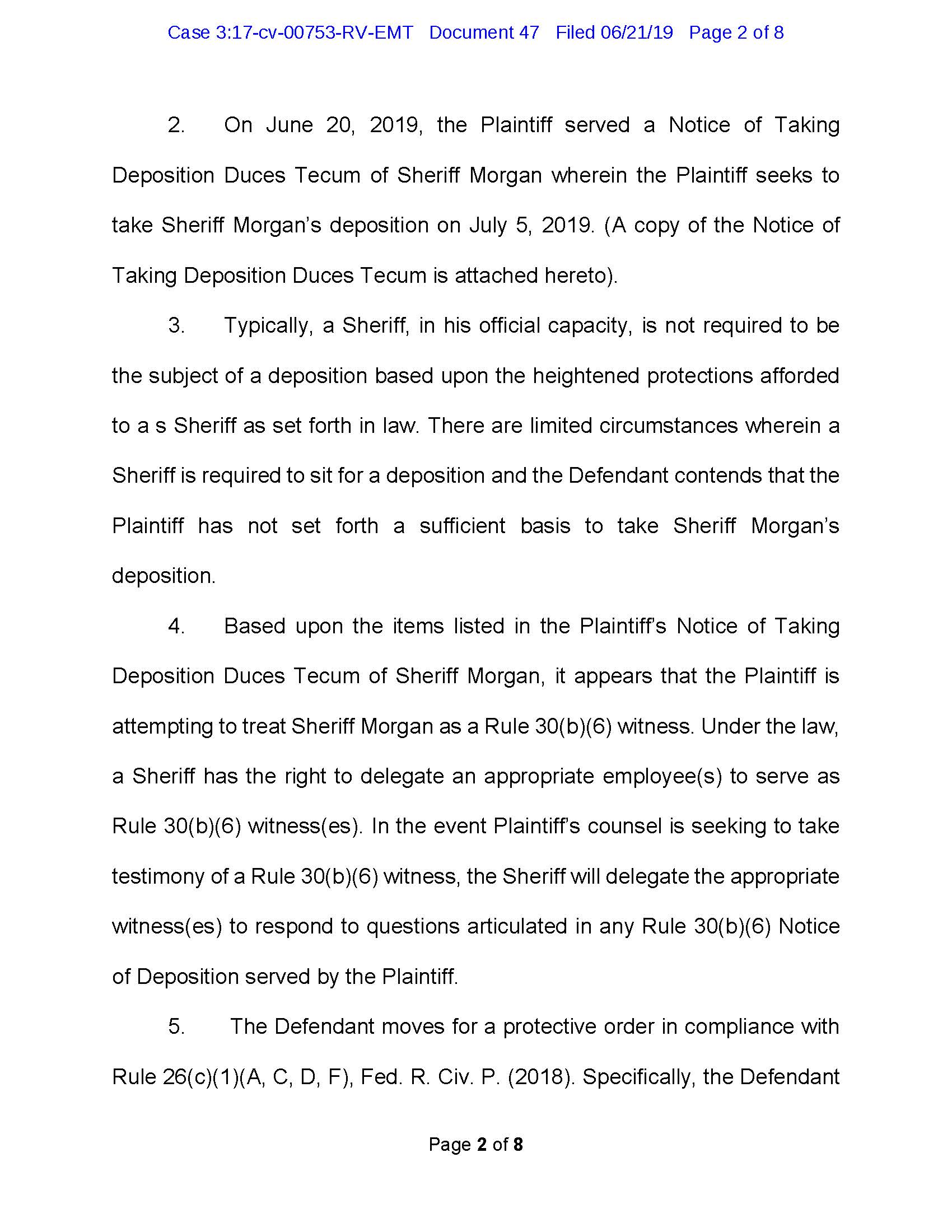 After finally getting back around to look at Leah Manning’s daughters’ case, I was floored to see a motion for protection by Sir David Morgan. In reading the motion, Morgan claims that he, the Sheriff, should not be deposed in this lawsuit, because of his position as the Sheriff. The truth is wants this sealed and to not be subjected to the inevitable questions in a deposition that is public.
