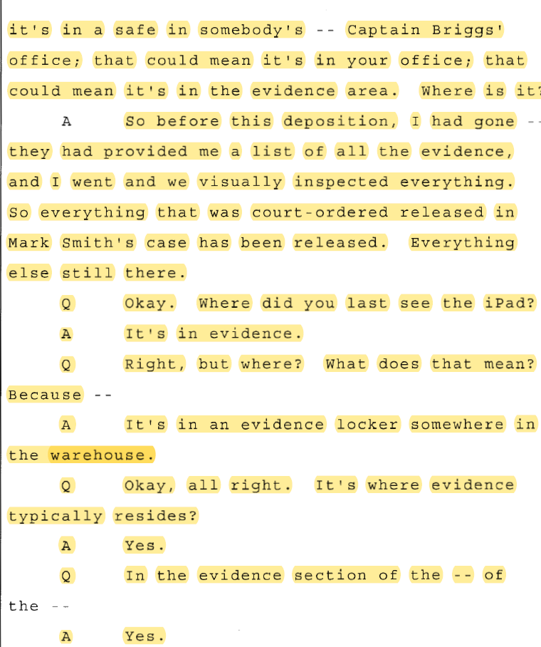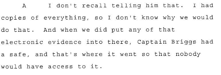 In Lt. Cappas’s deposition, this is what he says about storage of evidence