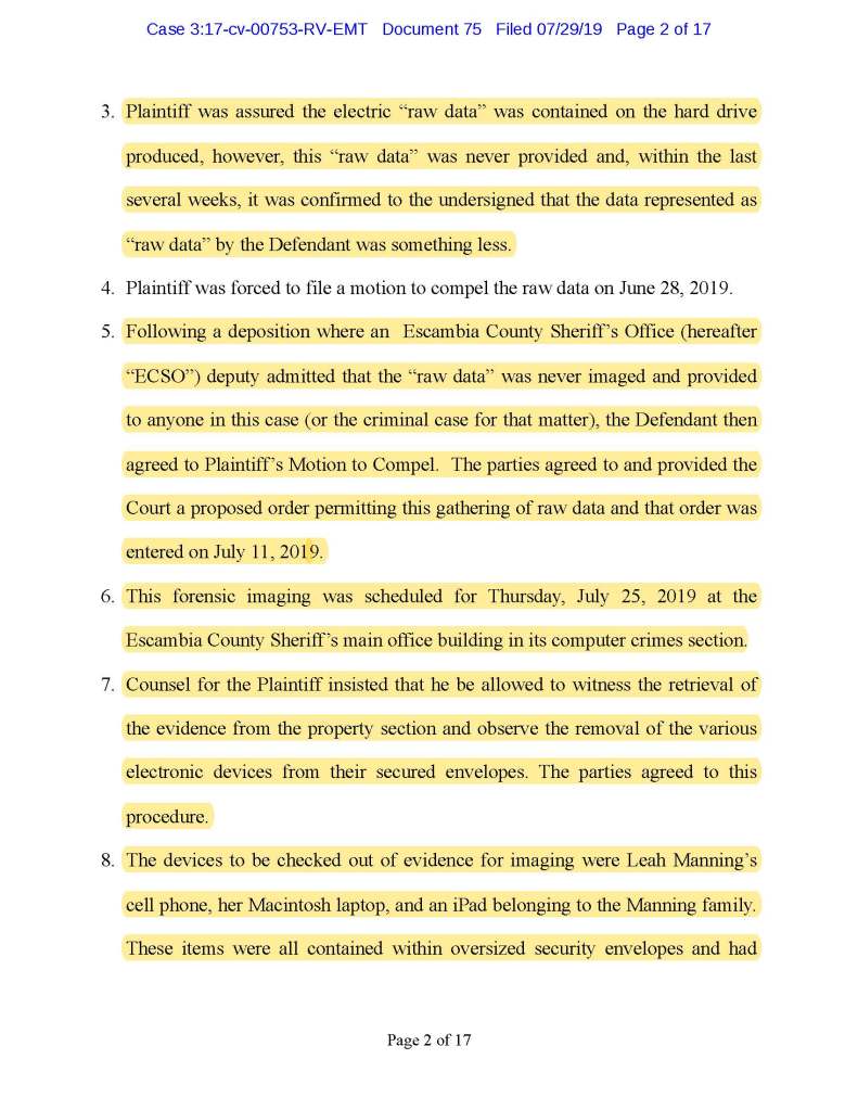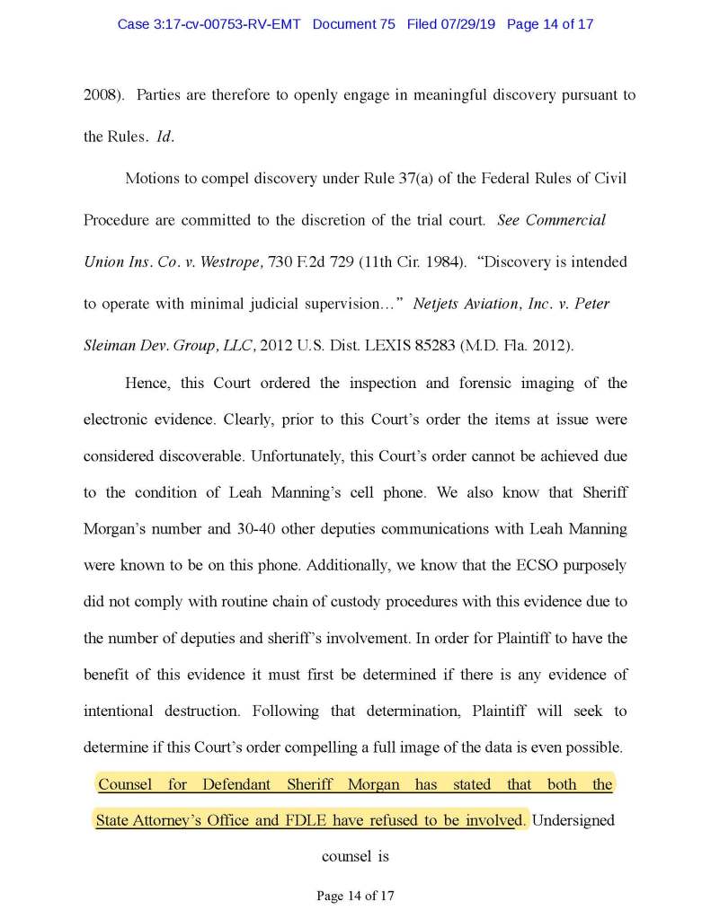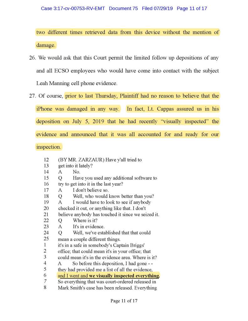 Joe Zarzaur has found that Leah Manning’s IPhone, evidence in the Rogers vs. Morgan et al lawsuit was damaged while in the ECSO’s custody. It is speculation that it was microwaved or cracked to destroy internal data, preventing disclosure of pictures and videos of the explicit child molestation by deputies and other damning evidence of inappropriateness by Sheriff David Morgan.