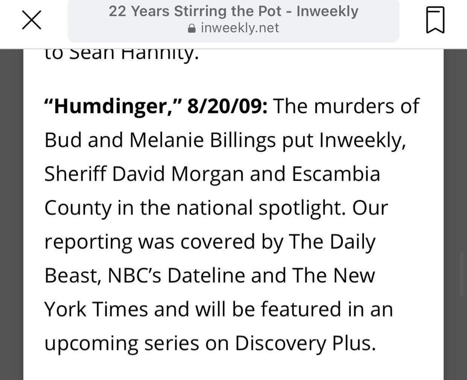 Please consider these facts. I hope you do the right thing and not add insult to injury to Gonzalez Jr. This communication makes you aware of the inconsistencies prior to the airing of this show. This was a high profile case that created political favor for the Sheriff who is now running for Mayor. Other than a few of the sheriff’s flunkies, this case has been exposed as a farce to the majority of the Panhandle community. No one believes the official narrative for various reasons including the above facts. You see, I have been researching this case and contacted many people myself as a civilian. I have uncovered these facts that even the attorneys never had. This is a complex case but when you get down to the evidence, it is non existent. I hope you review what I have said. Check my website, billingsmurder.com and conjuringjsutice.com. This is my full time project. I am also a trusted friend of Gonzalez Jr. The real story is his, which no one has heard as of yet.