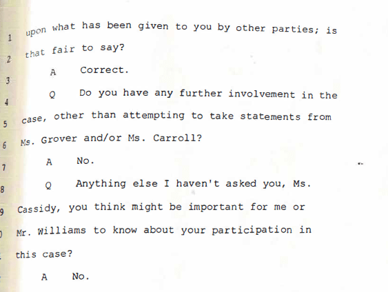 Here are a few excerpts from the deposition of Stephanie Cassidy: