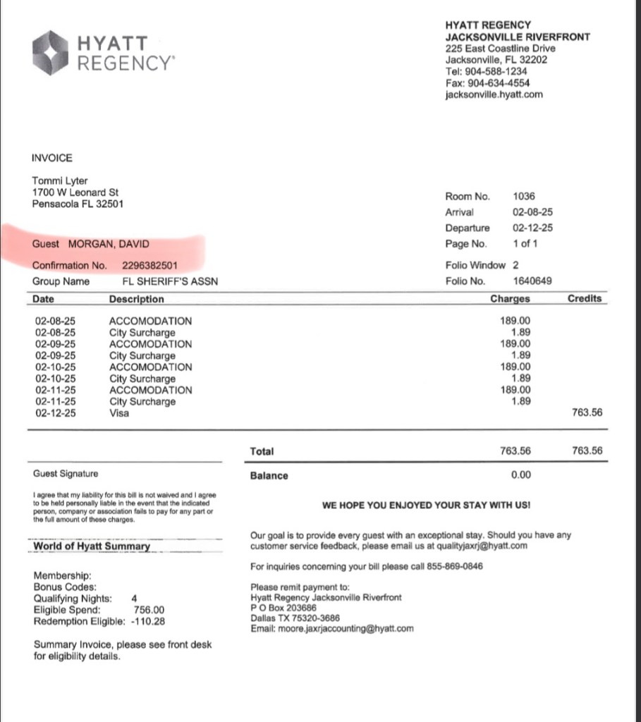 Now I saw this and wondered if that may have been something leftover from when Morgan was Sheriff but surprisingly it was not. Morgan’s name doesn’t appear on Chip’s receipt and he arrived 2 days prior to Tommy. So while this is crazy and maybe it’s something fraudulent like Tommy not attending but Morgan did while Tommy took the per diem and reimbursement for something he doesn’t deserve, that’s not the subject today. And I believe this was a red herring thrown out to make me not look into Chitney. Sorry Andy, it didn’t work.