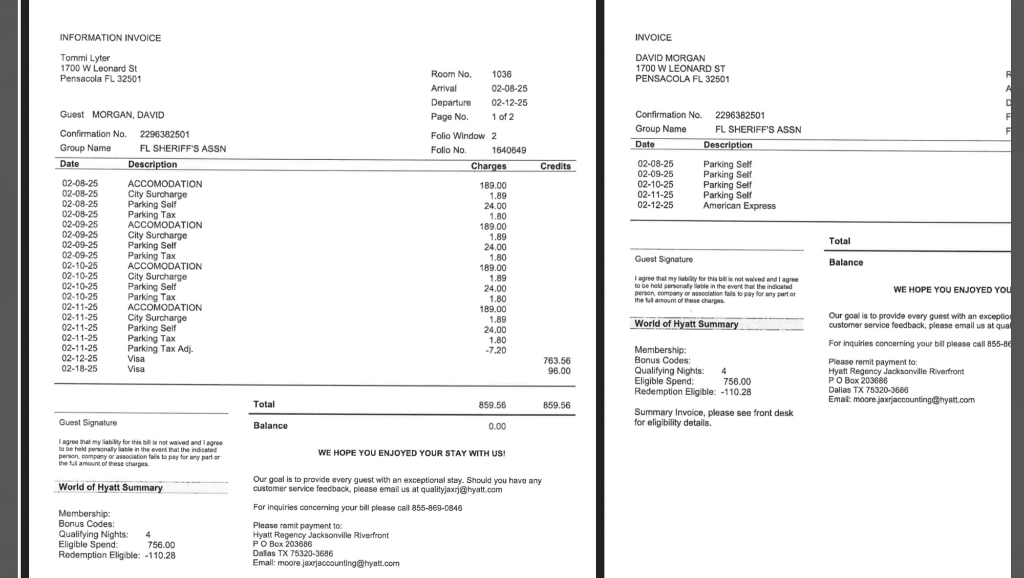 There are 2 particular travel packets that are questionable. The first is from February of this year. It is a conference in Jacksonville that Chitney attended as well as Tommy Lyter. Now remember, I didn’t ask for Tommy’s documentation but Andy Hobbs suggested that they should provide it to me. Let me say I think that was a strategic move. I will show you why.
